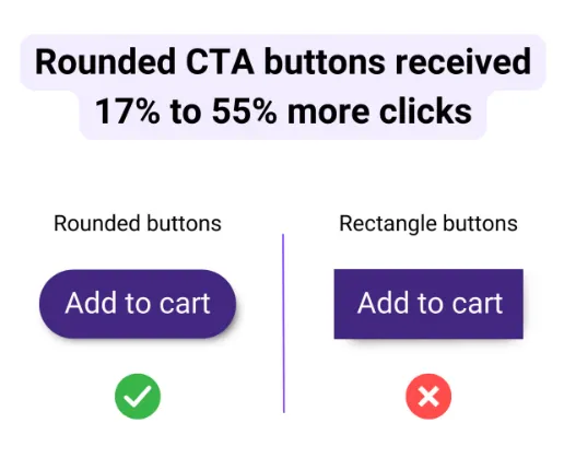A recent study claims, “Curved CTA buttons received 17% to 55% higher clicks (CTR) than buttons with sharp angles” (Research date: December 2023, University of South Florida, University of Tennessee & Neighborly).