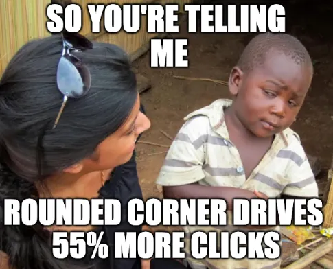At first glance, it states that you will receive up to 55% more clicks if you change your button radius! What an impactful and easy-to-implement idea to make any business more successful. I already see backlog requests to change the button radius across the world.