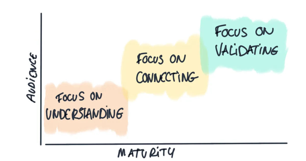 At this stage, every conversation with user/customer can be clustered around some key elements of value. You want to make sure those findings connect with more than one person.