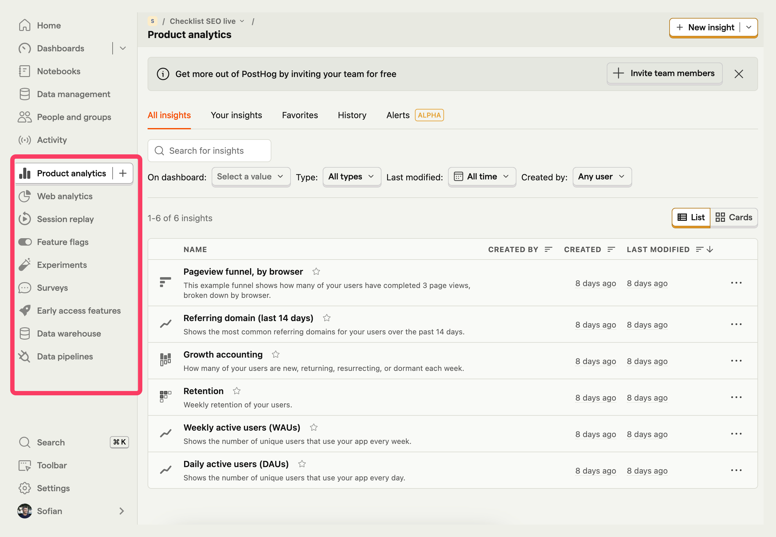 • Posthog for Marketers: Posthog is ideal for marketers relying on Analytics to track website traffic and drive growth. It offers a rich feature set, seamless integration with ads and martech stacks, and all insights in one place—all for free for smaller sites.