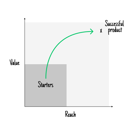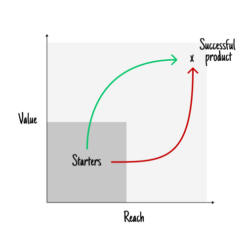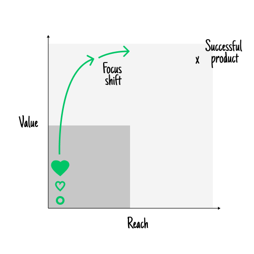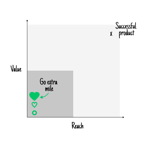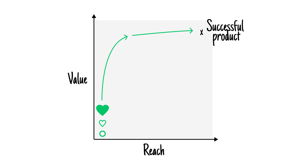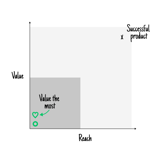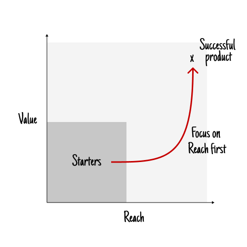 Focusing on reach first is dangerous and tends to be a trap. The pursuit of reach will make your product boring. More reach means average; you must offend no one and try to satisfy everyone. It will lead to compromises, generalizations, and, most importantly, a painful path to growth.