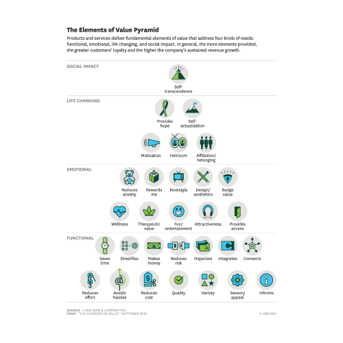 Then, I found the30 Elements of Value, the most viewed article from Harvard Business Review.